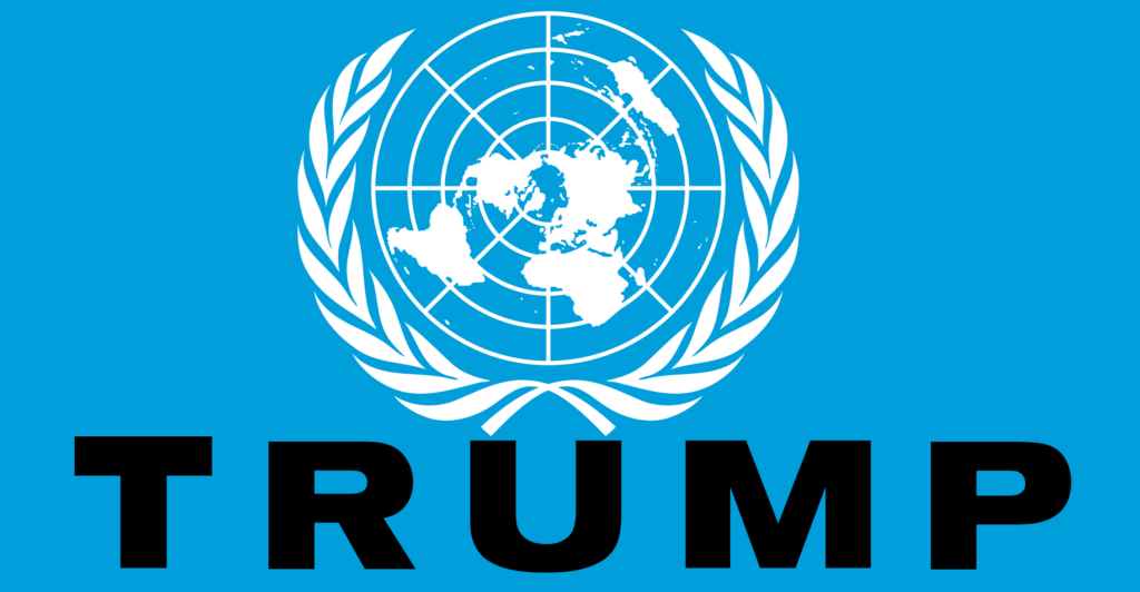 Naschrift van de redactie. Het plaatje bovenaan maakten we eerder vandaag zelf, door de naam Trump over het VN-logo te plakken. Nu blijkt er, volgens de Wikipedia, al een officieel logo te zijn dat nog veel erger is. Zoals van Trump te verwachten van bladgoud, AI-gegenereerd, met de VS in het midden (en de schijnwerpers op Washington) en verreweg de meeste andere staten ter wereld onzichtbaar.