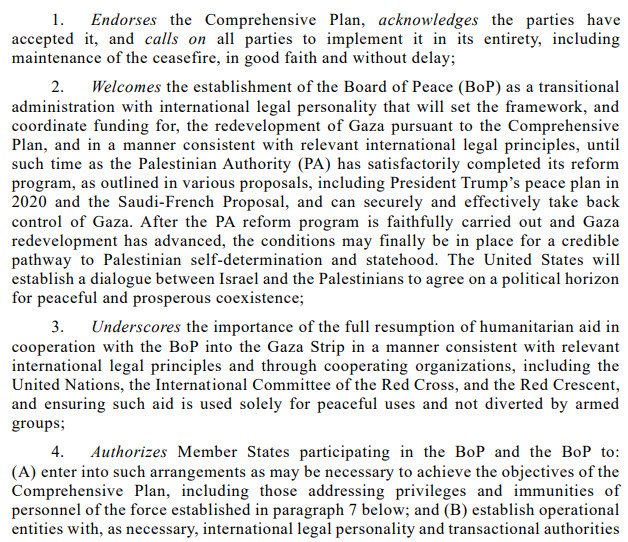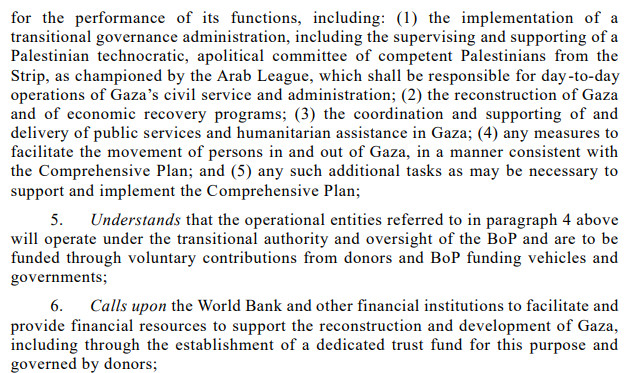 Het is al compleet van de pot gerukt dat de VN-Veiligheidsraad ervoor gekozen heeft om Gaza over te dragen aan een organisatie waarvan de operationele structuur nog niet bekend was. Dit was indertijd overigens al duidelijk. Trump kreeg compleet de vrije hand.