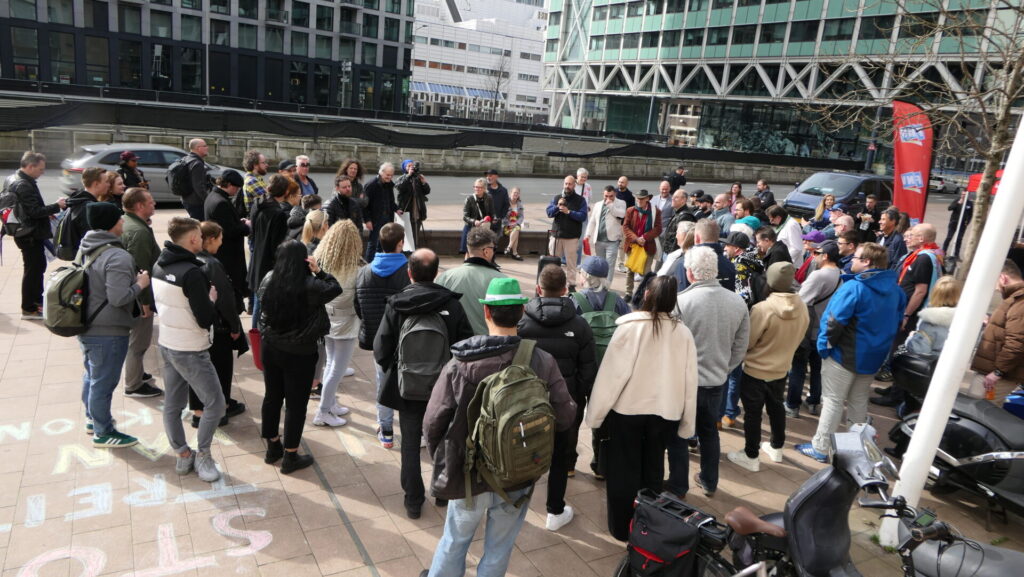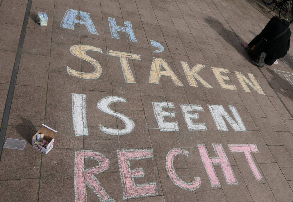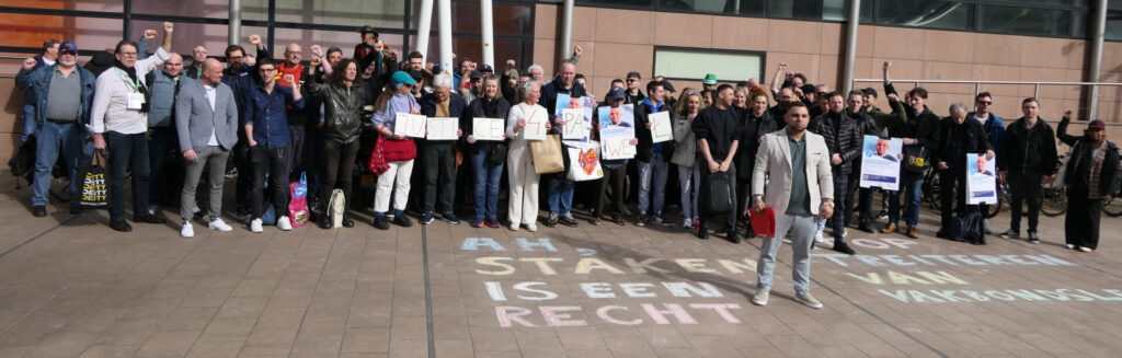 Vanmiddag hebben zo’n tachtig mensen in Den Haag deelgenomen aan de solidariteitsmanifestatie vooraf aan de rechtszaak van Paweł Rudzki tegen Albert Heijn. Het grootwinkelbedrijf heeft Paweł ontslagen nadat hij een staking organiseerde samen met zijn collega-uitzendwerkers voor gelijke rechten in hun distributiecentra. Zoals te verwachten, wierp de advocaat van Albert Heijn alles in de strijd om de stakingsleider klein te krijgen.