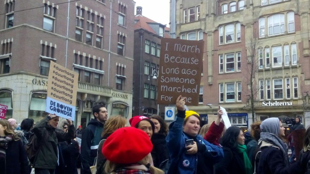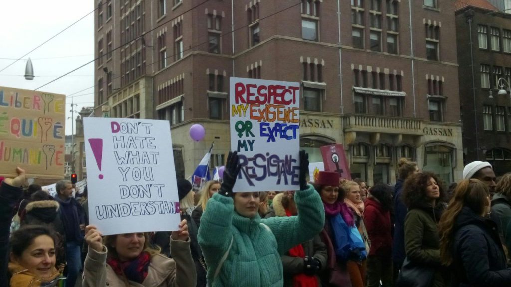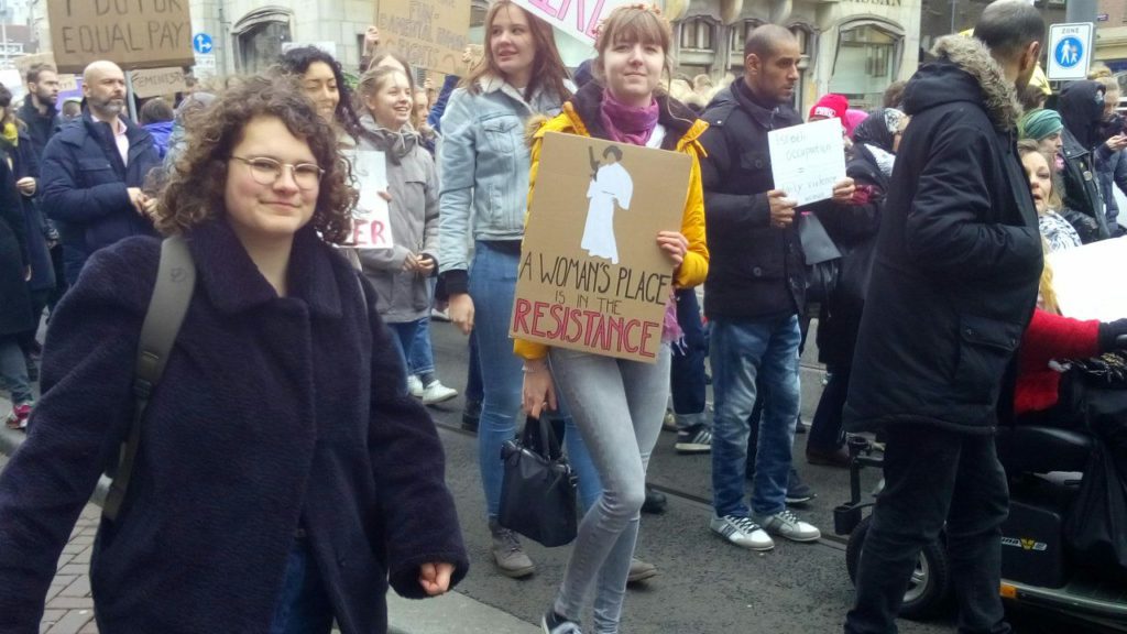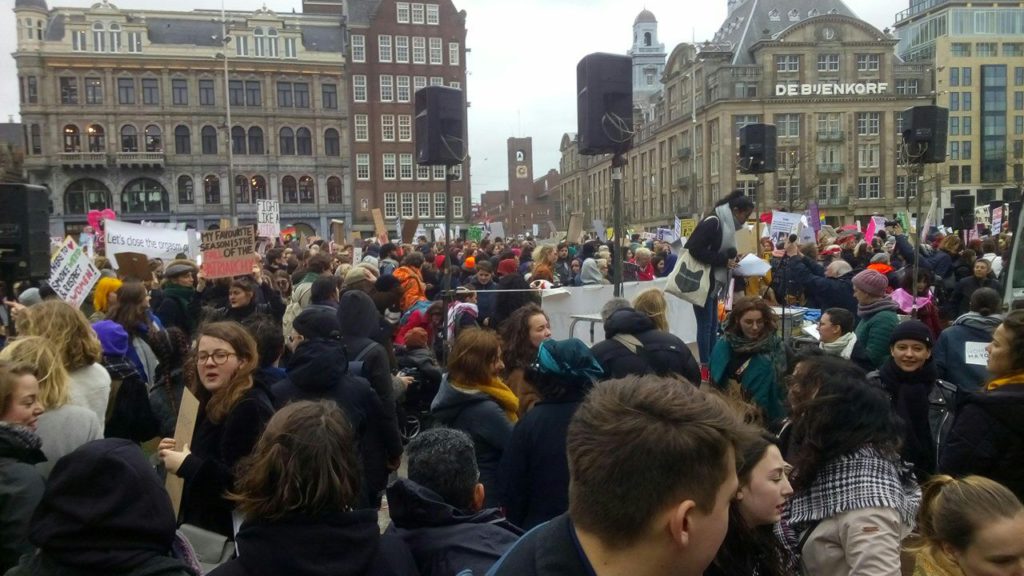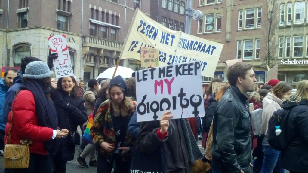 Veel strijdbaarheid en creativiteit bij de vrouwenmars vandaag in Amsterdam (beeldverslag)