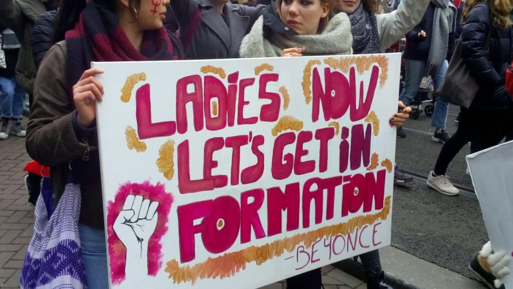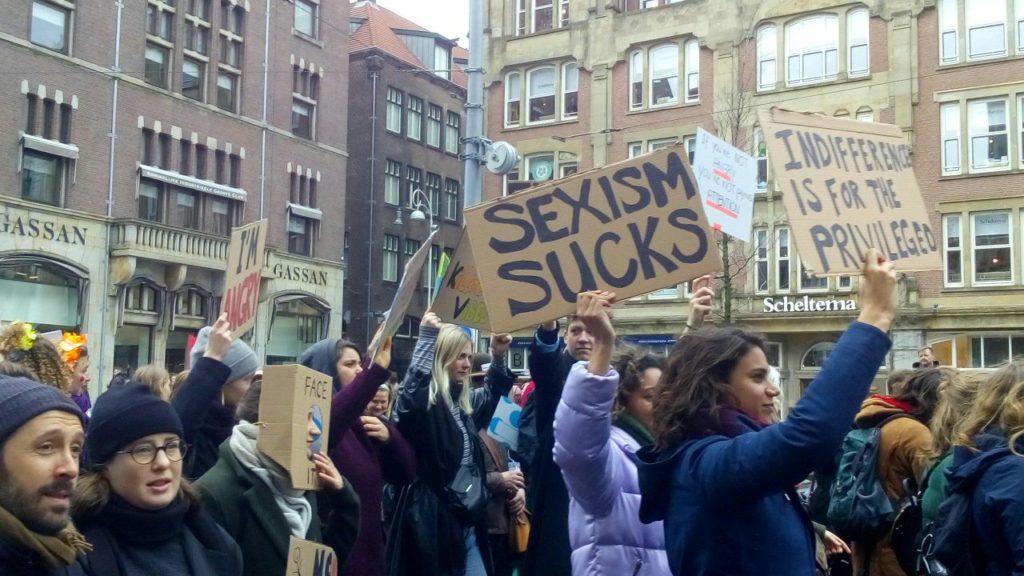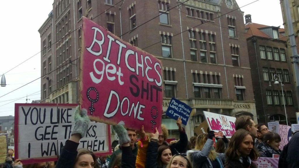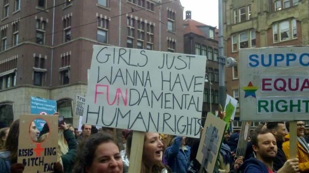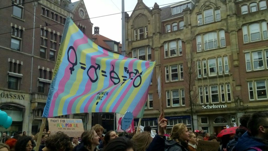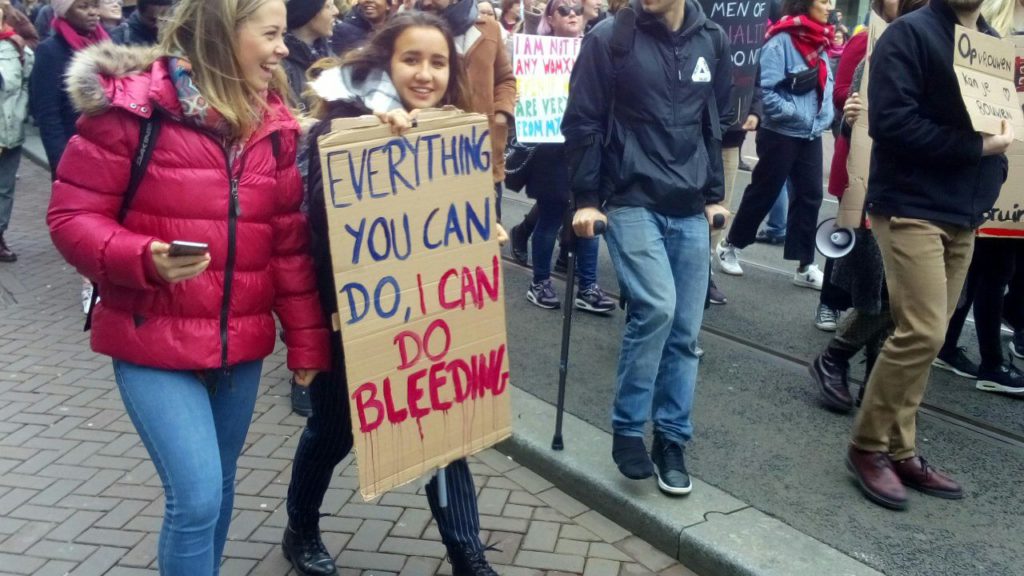 Veel strijdbaarheid en creativiteit bij de vrouwenmars vandaag in Amsterdam (beeldverslag)