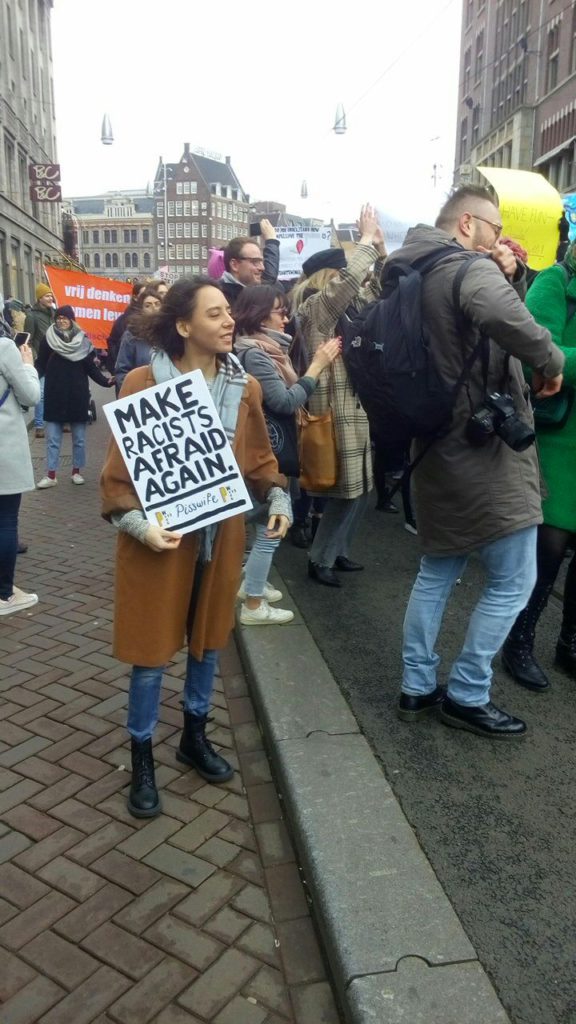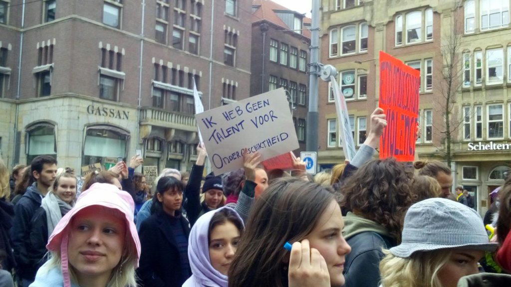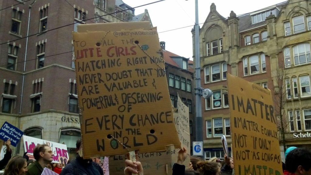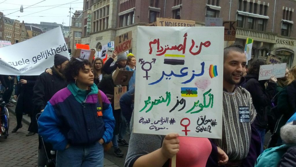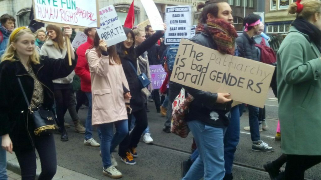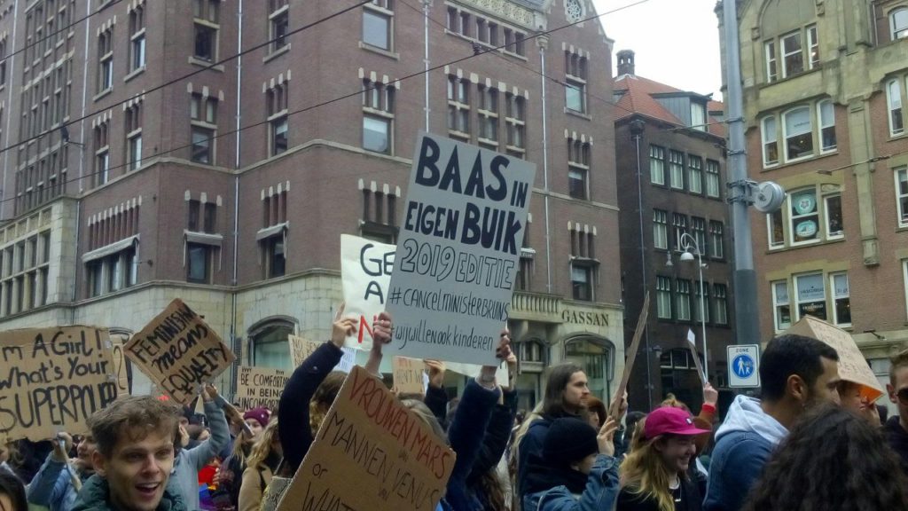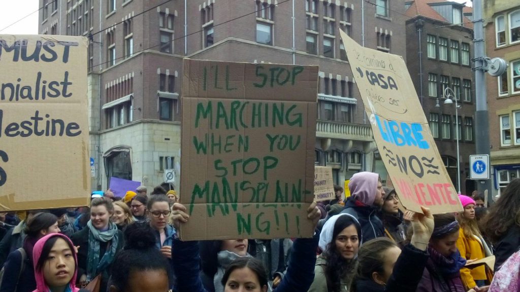 Het was vandaag heel erg druk bij de intersectionele vrouwenmars in Amsterdam. “Het gaat in 2019 niet alleen over vrouwen. Het gaat over ons allemaal (v/m/x). Op elke manier. Omdat alle onderdrukking met elkaar te maken heeft: all oppression is connected”, aldus de organisatie. Dat was goed terug te zien in de vele strijdbare en creatieve spandoeken en actieborden.