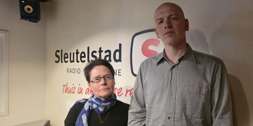 Ophir Waasdorp en Willy de Heer van Volt Leiden in de studio van Sleutelstad (Foto: Chris de Waard).