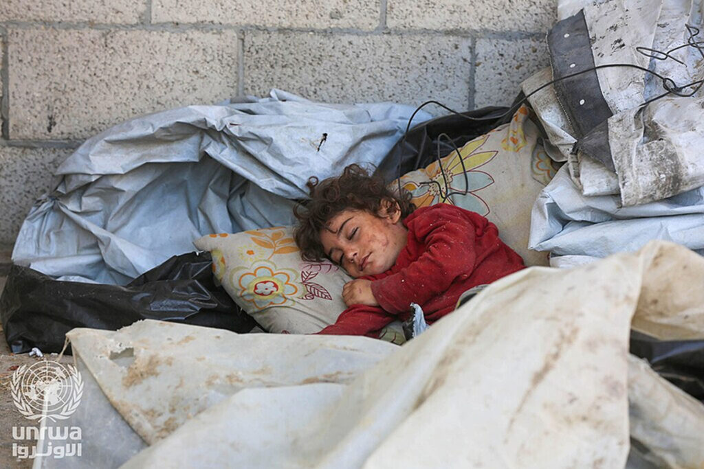 Meisje slaapt op straat na Israëlisch bevel de woning te verlaten, augustus 2024. (Foto: Ashraf Amra/CC Attribution-ShareAlike 3.0 IGO)