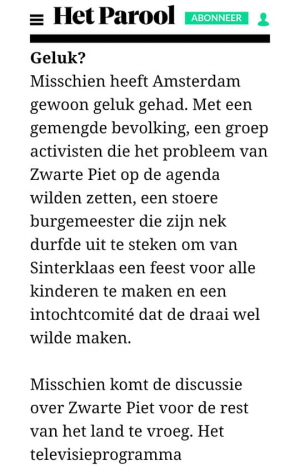 Tweede screenshot gaat over de Amsterdamse intocht met roetveegpieten en hoe succesvol deze was.
