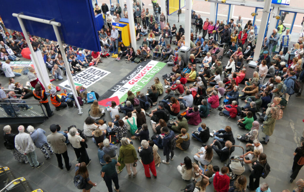 De acties zijn zo divers als het schrijven van een verzoekschrift aan de koning, het doen van een oproep aan je vakbond om te staken, het tekenen van een petitie richting het kabinet, het meedoen aan een lawaaiprotest op een station, het doen van een oproep richting Pride om de samenwerking met Booking te stoppen en het boycotten van foute farmaceutische bedrijven. Elke actie heeft een ander doelwit. Van de koning en politici, tot de media en de publieke opinie en aan apartheid en genocide medeplichtige bedrijven. De diverse doelwitten illustreren hoe diep verstrengeld het systeem is dat de apartheid en genocide in Palestina mogelijk maakt.